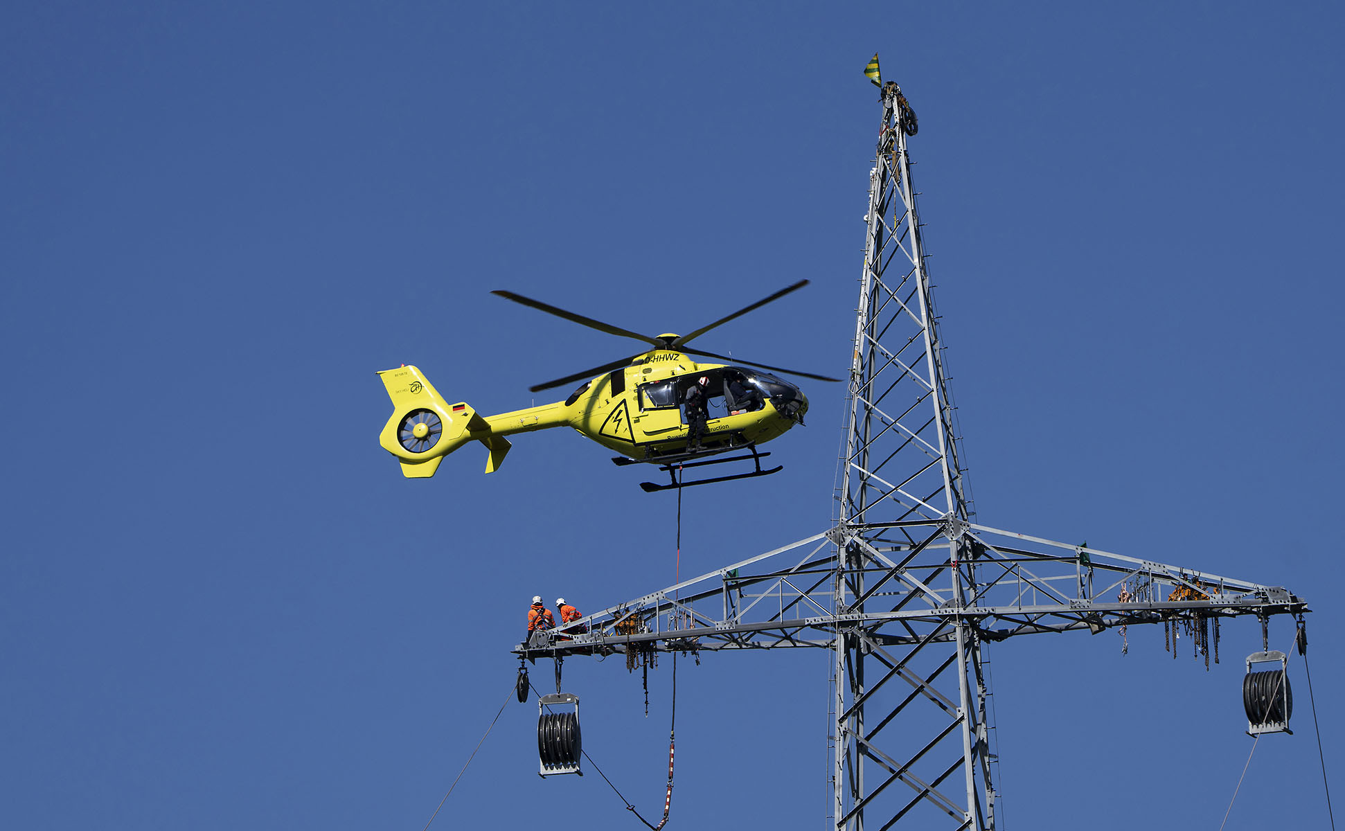 Helikoptereinsatz der Baufirma Omexom im Auftrag von Amprion.