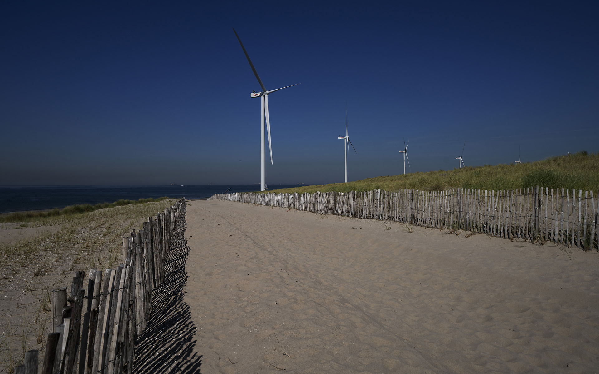 Windpark und Strandleben am Rotterdamer Hafen