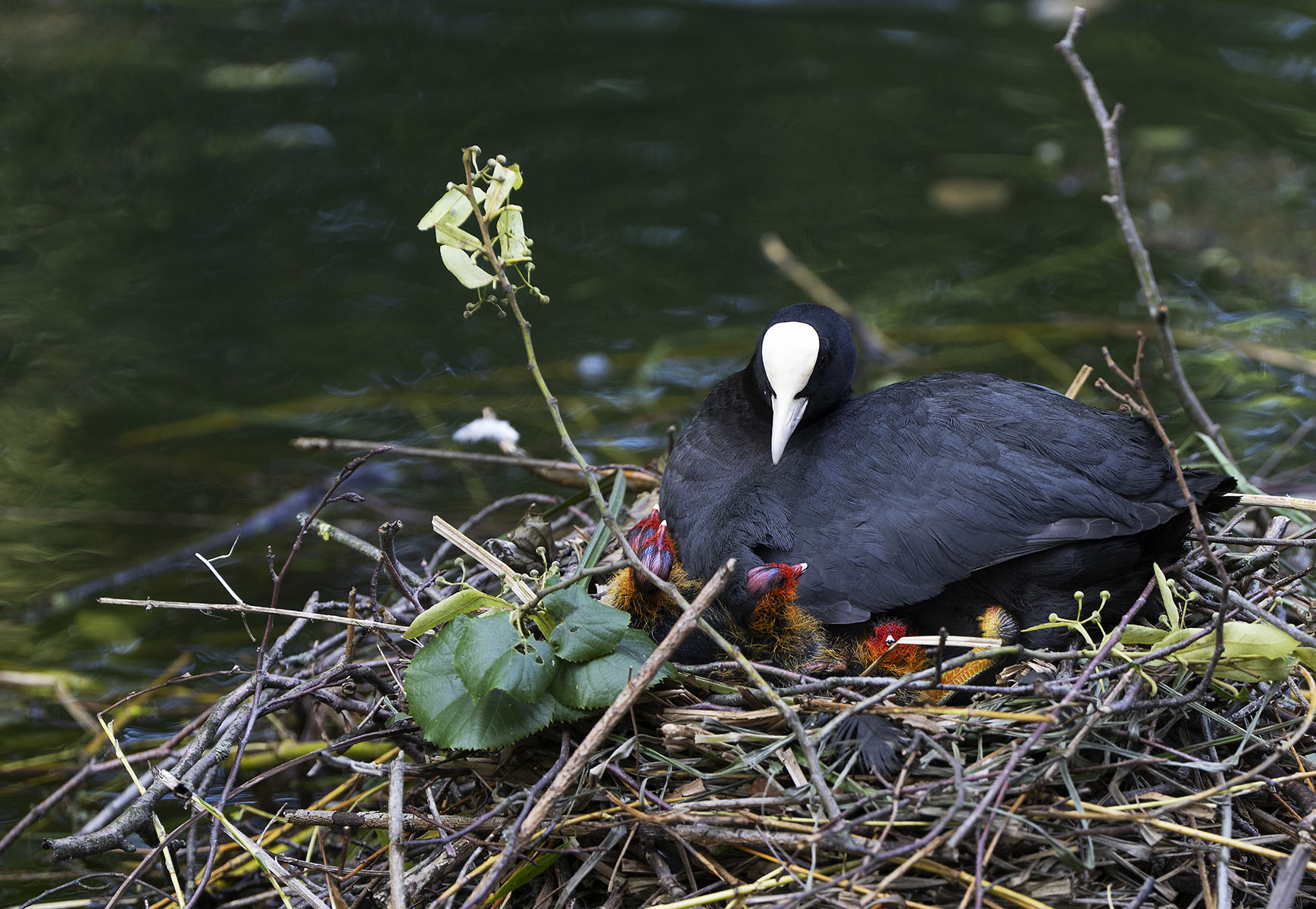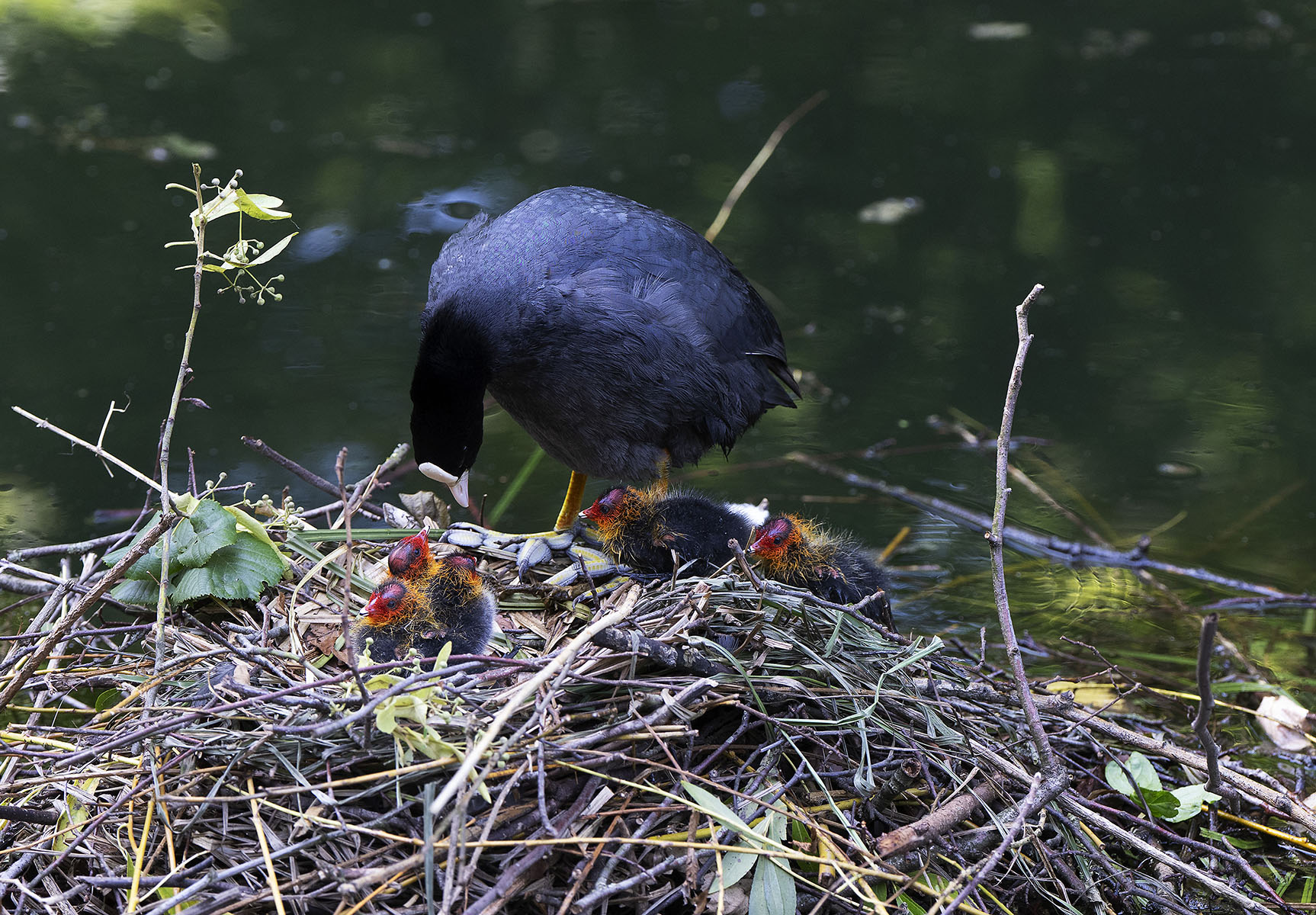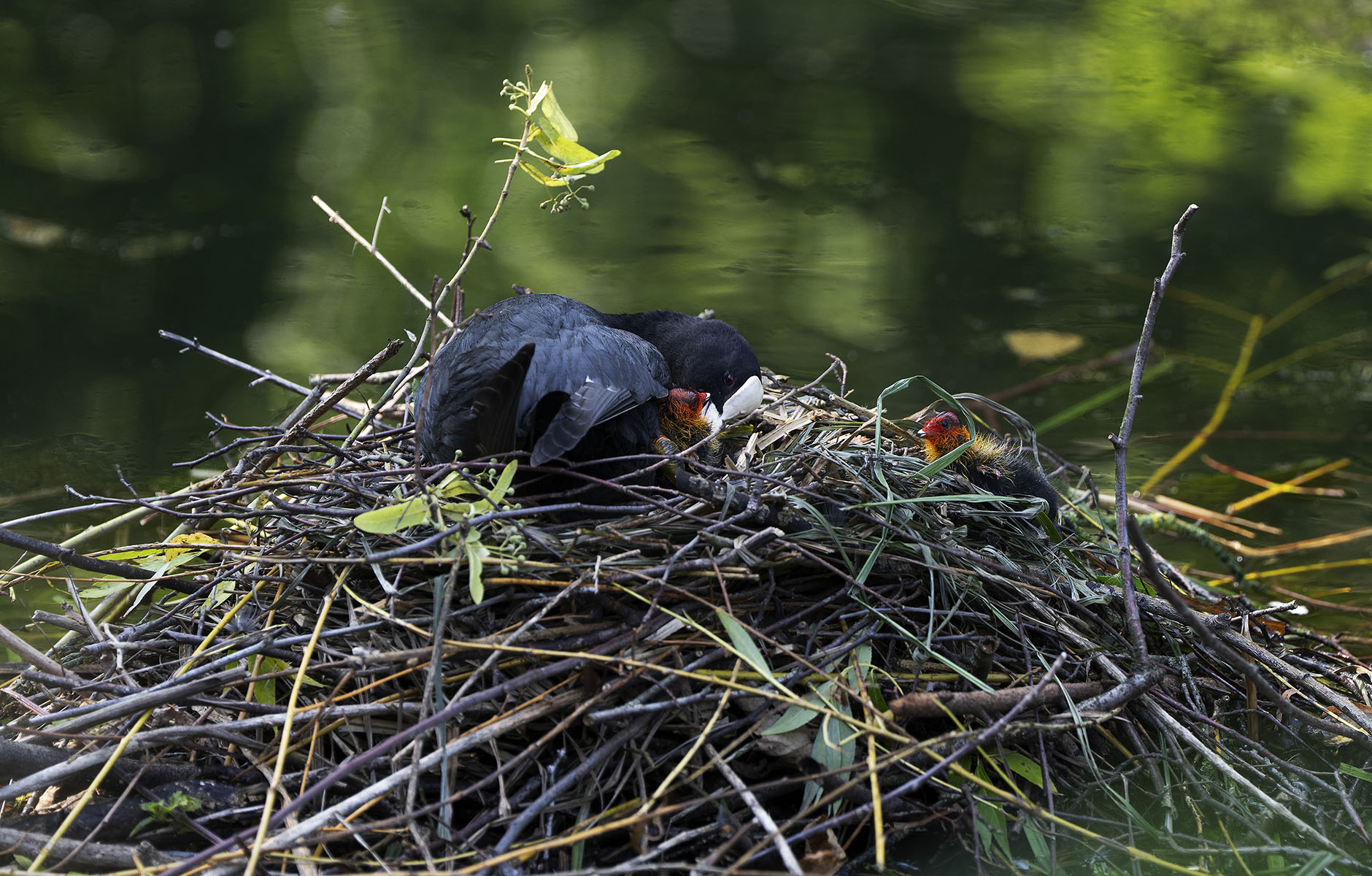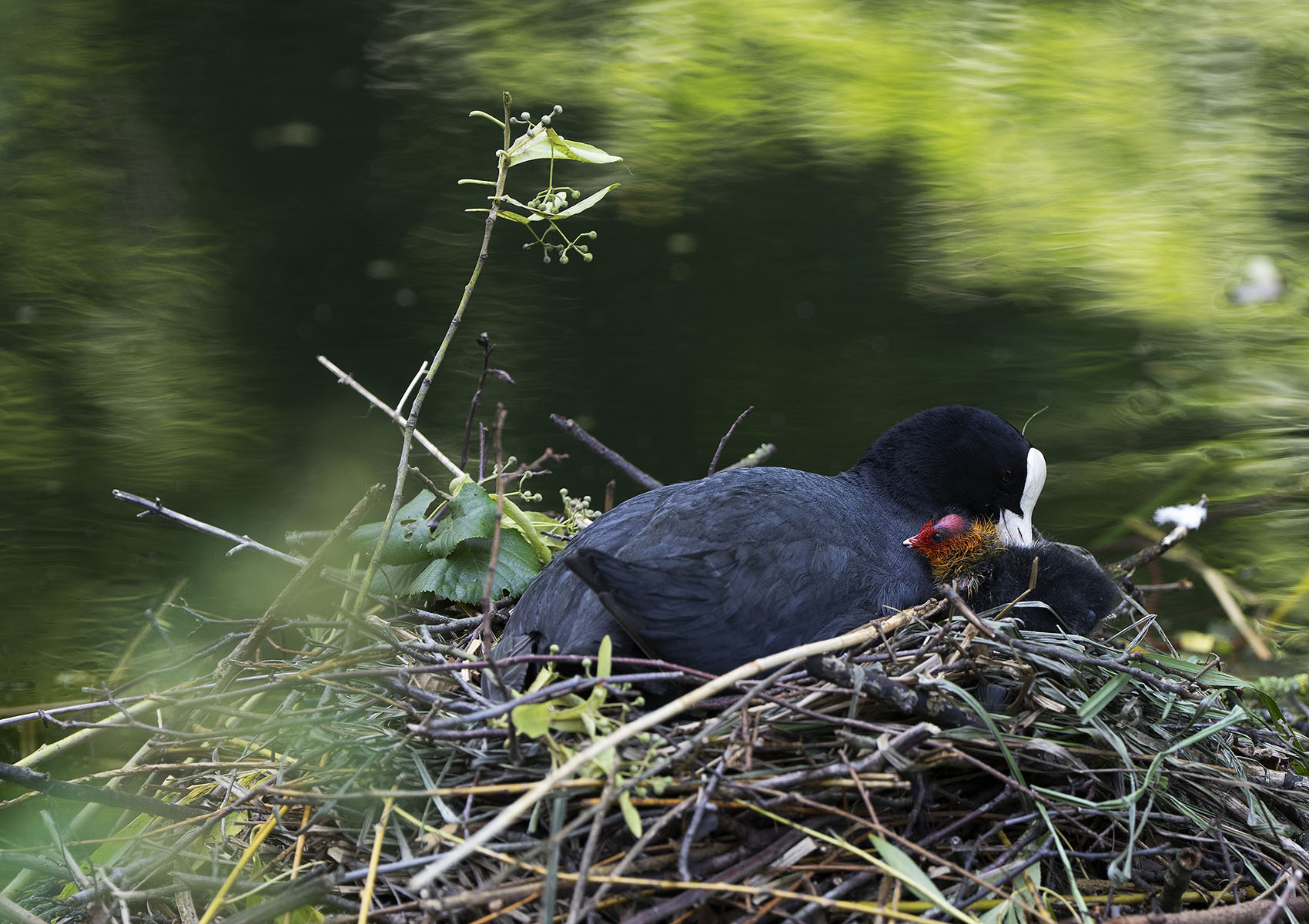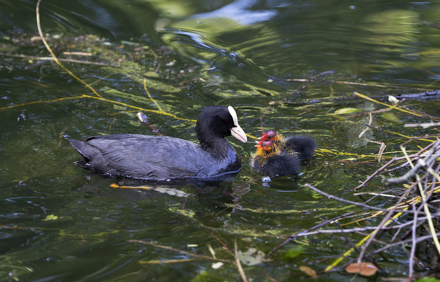 11. Juni 2025    Blässhuhn (Fulica atra) mit Küken im Moerser Schlosspark