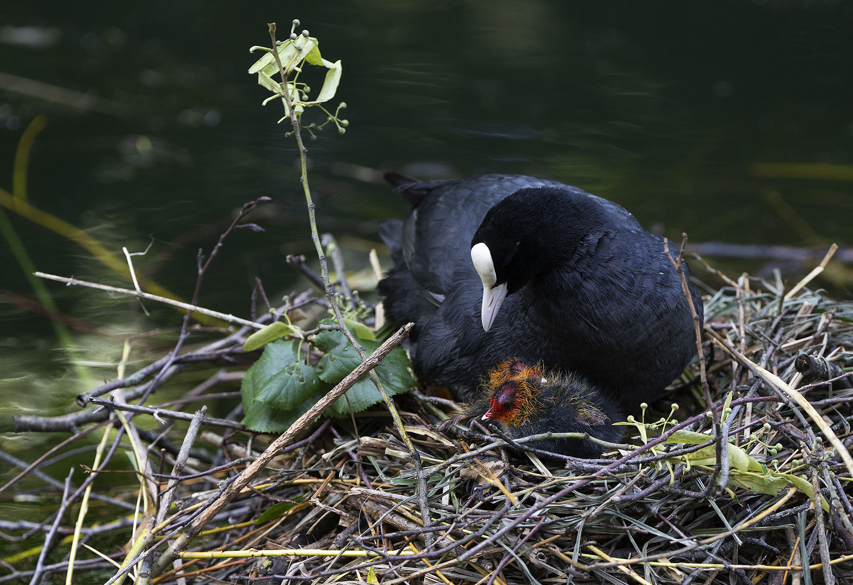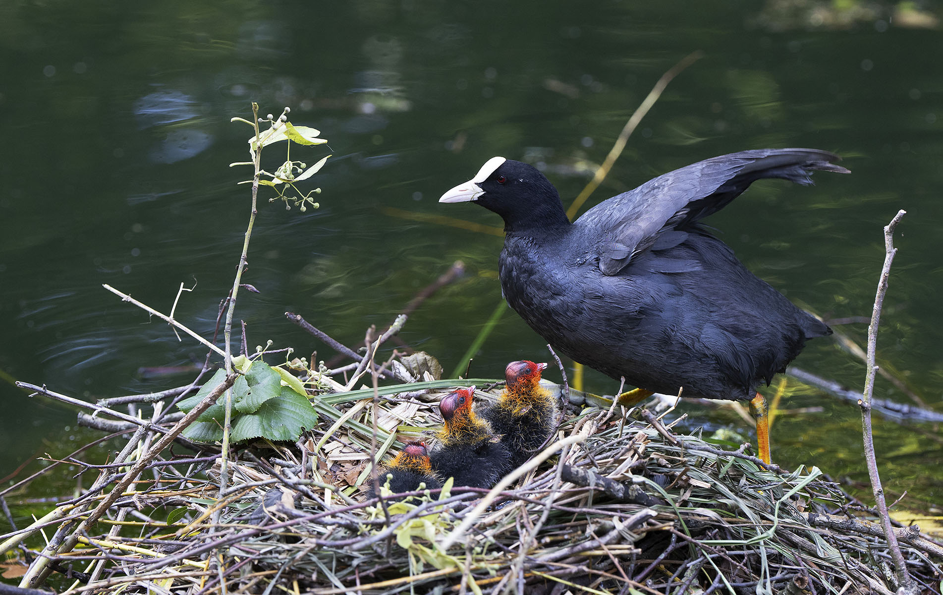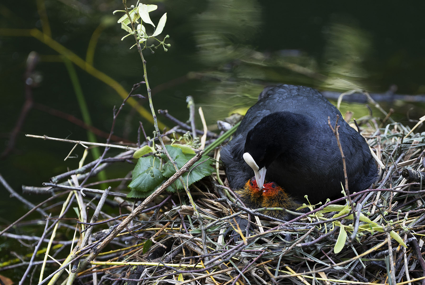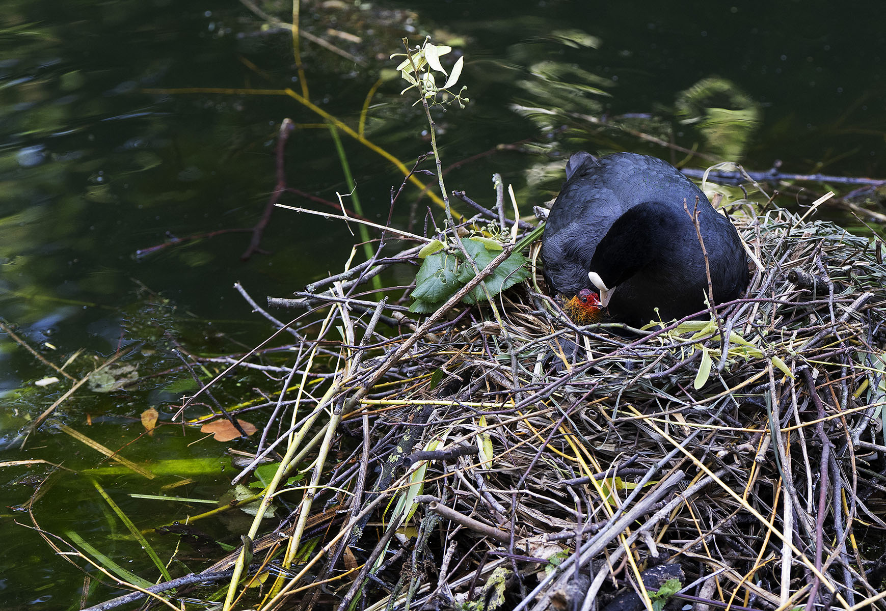11. Juni 2025    Blässhuhn (Fulica atra) mit Küken im Moerser Schlosspark