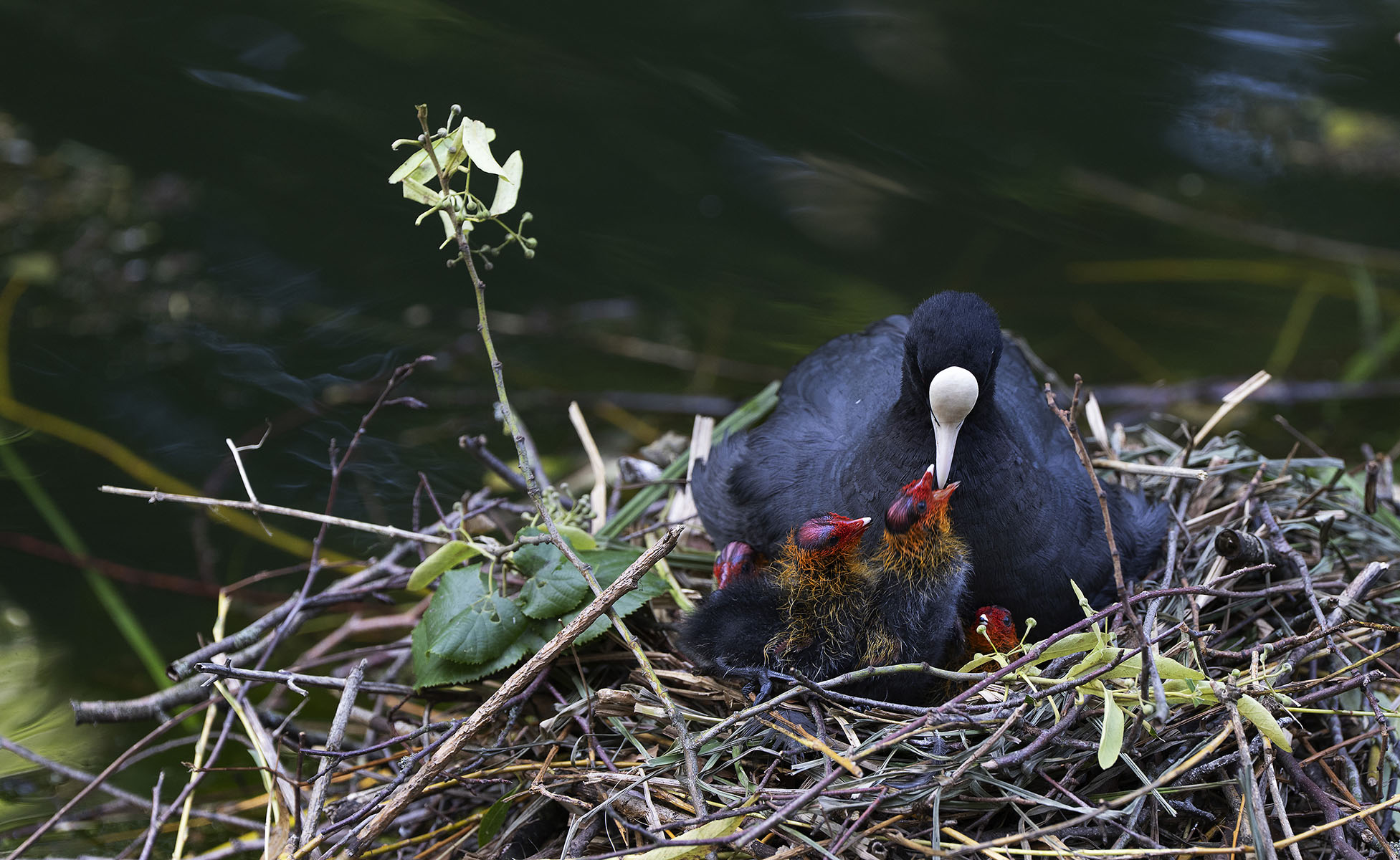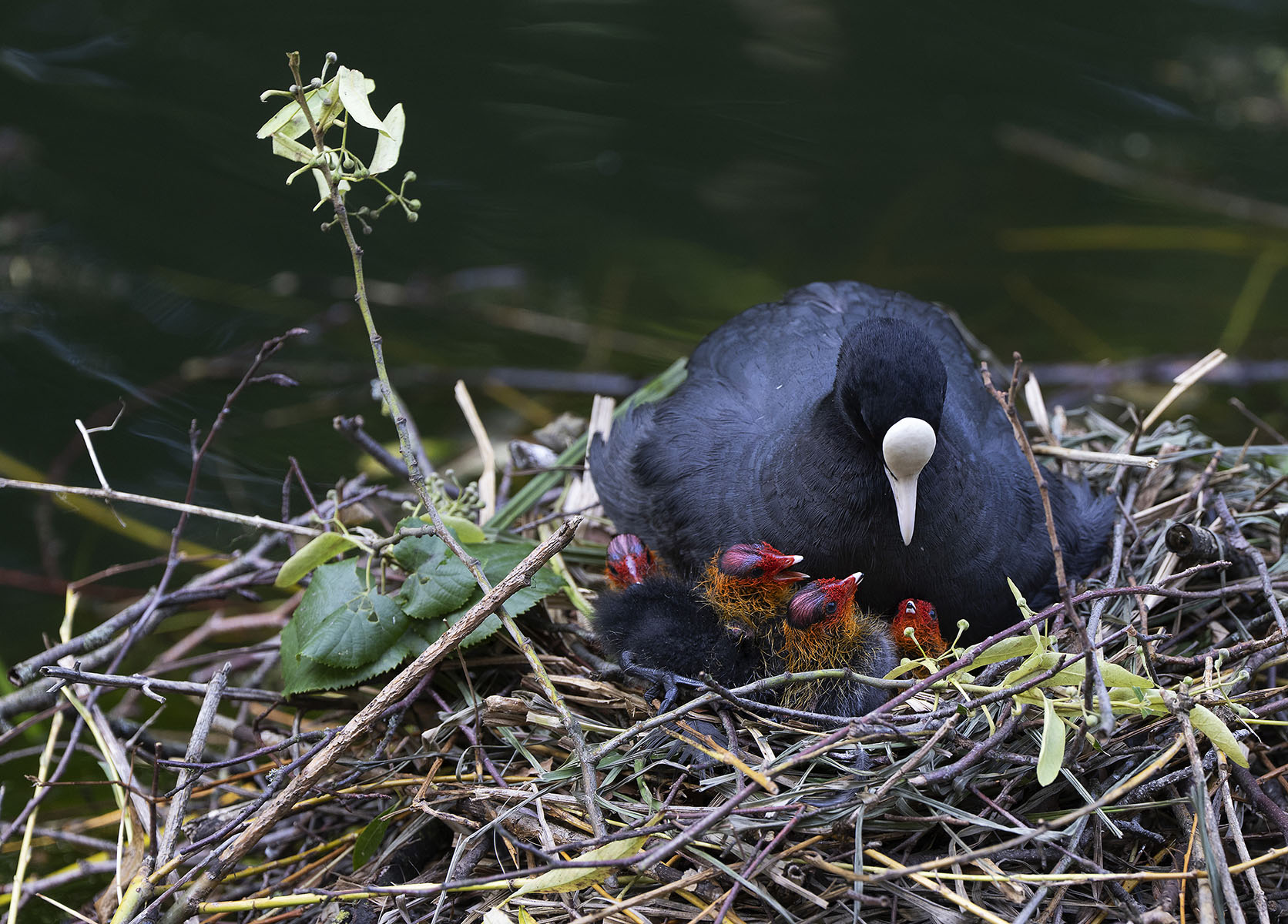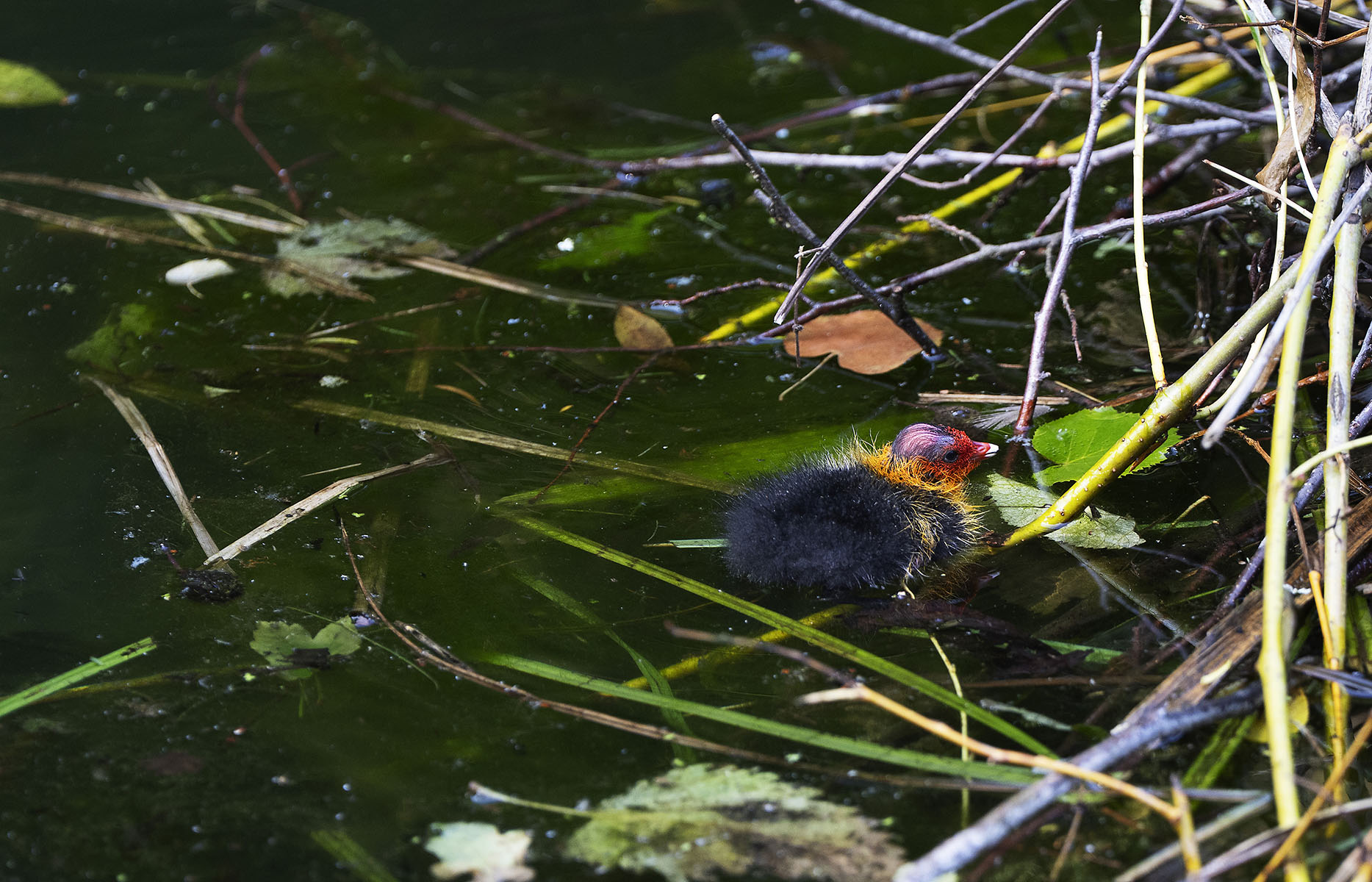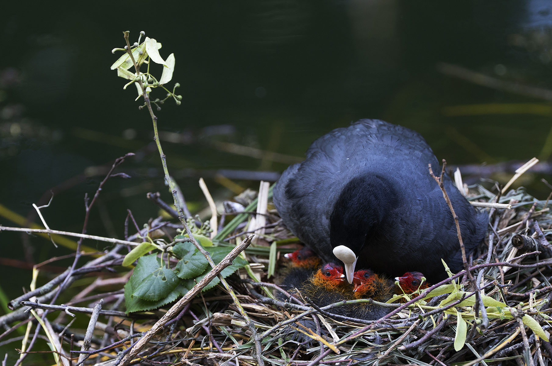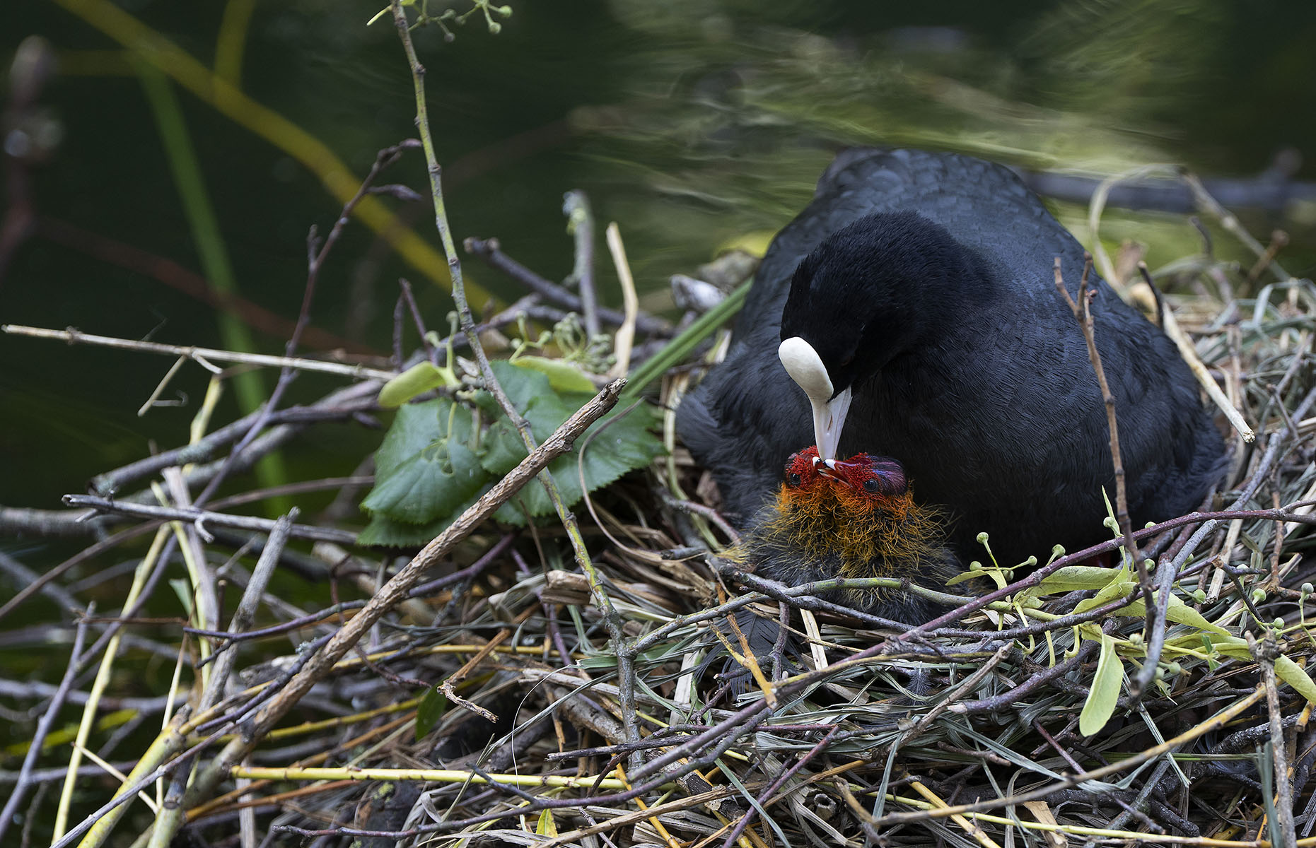 11. Juni 2025    Blässhuhn (Fulica atra) mit Küken im Moerser Schlosspark