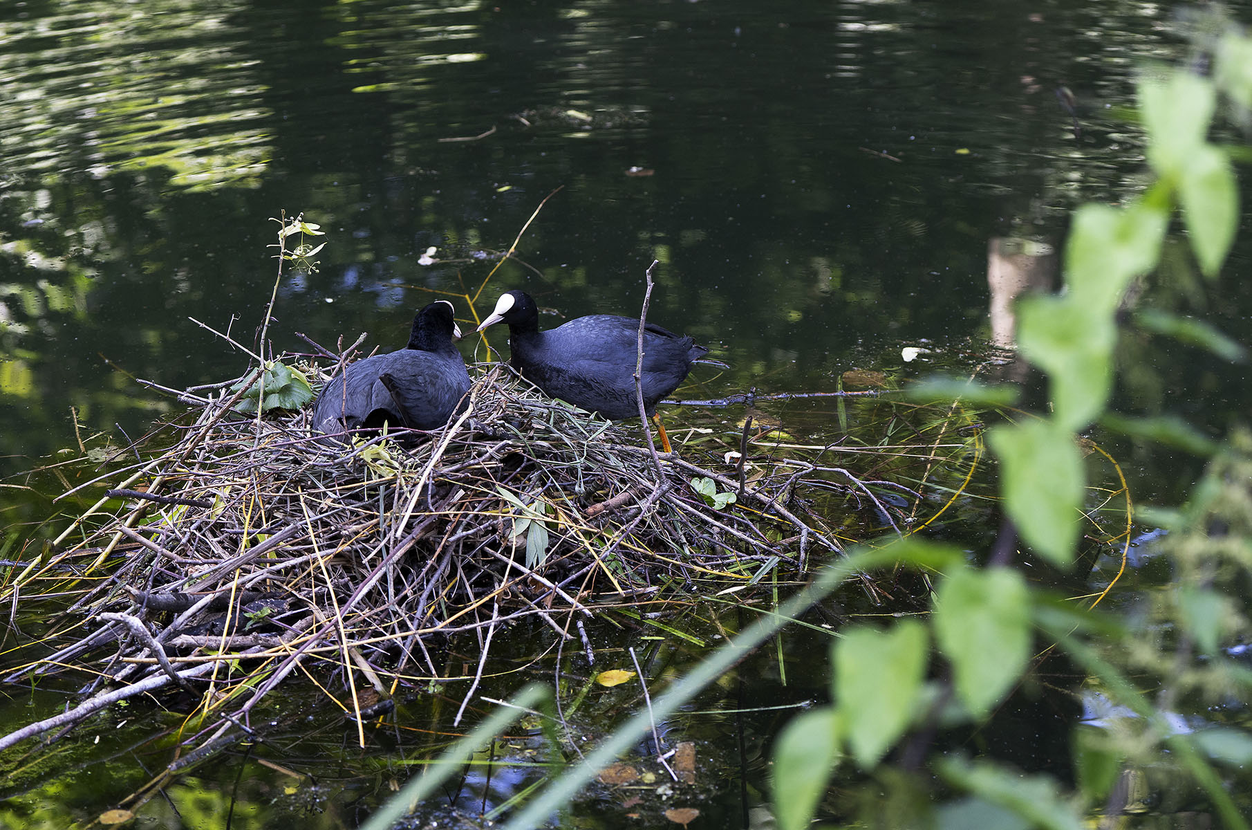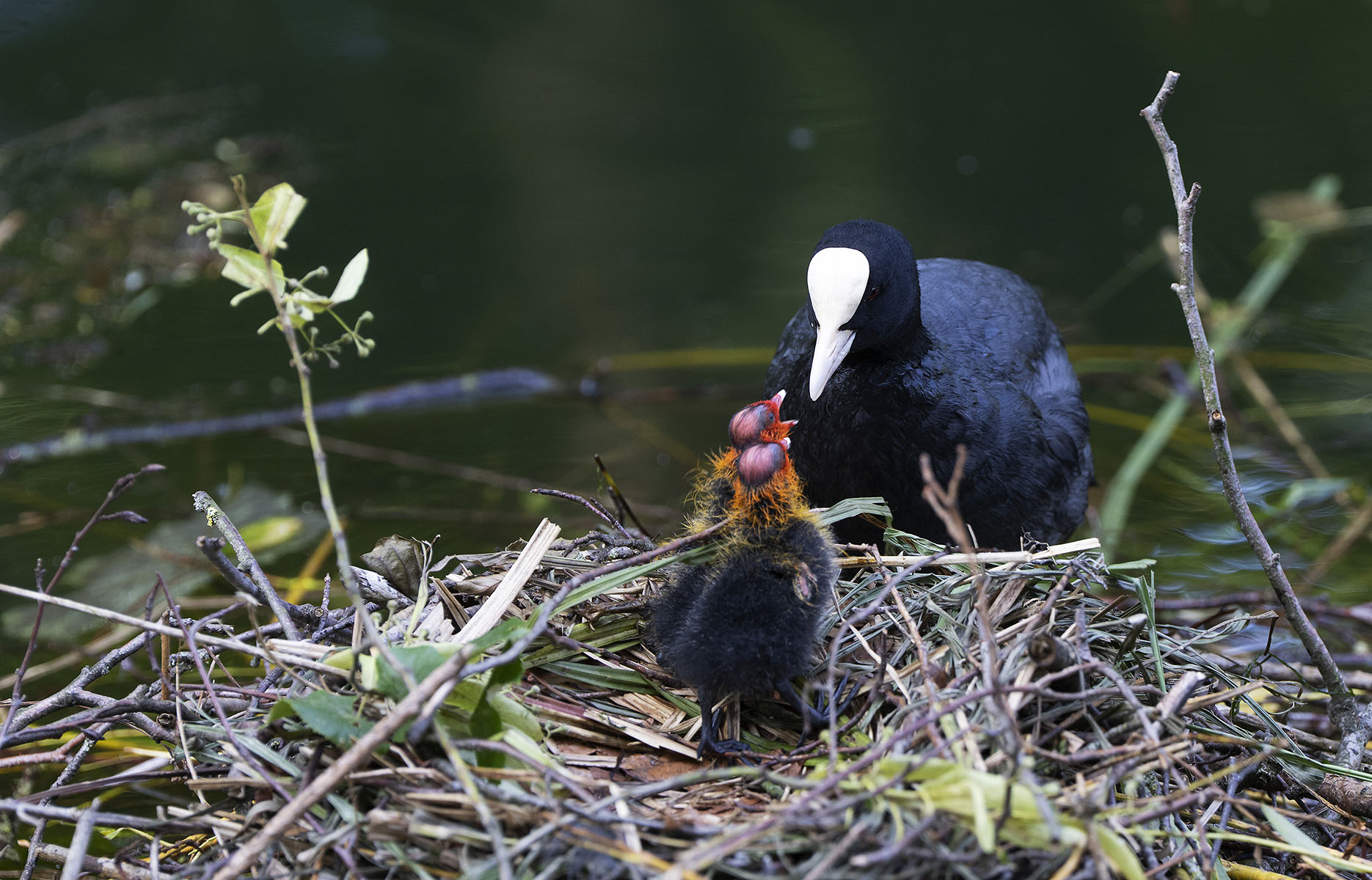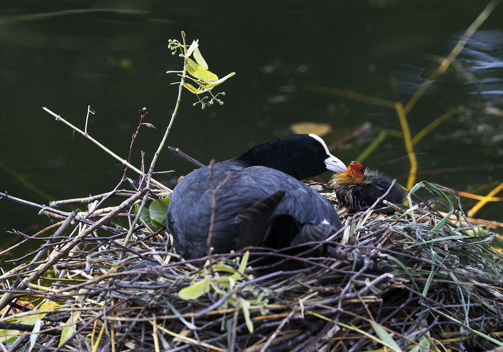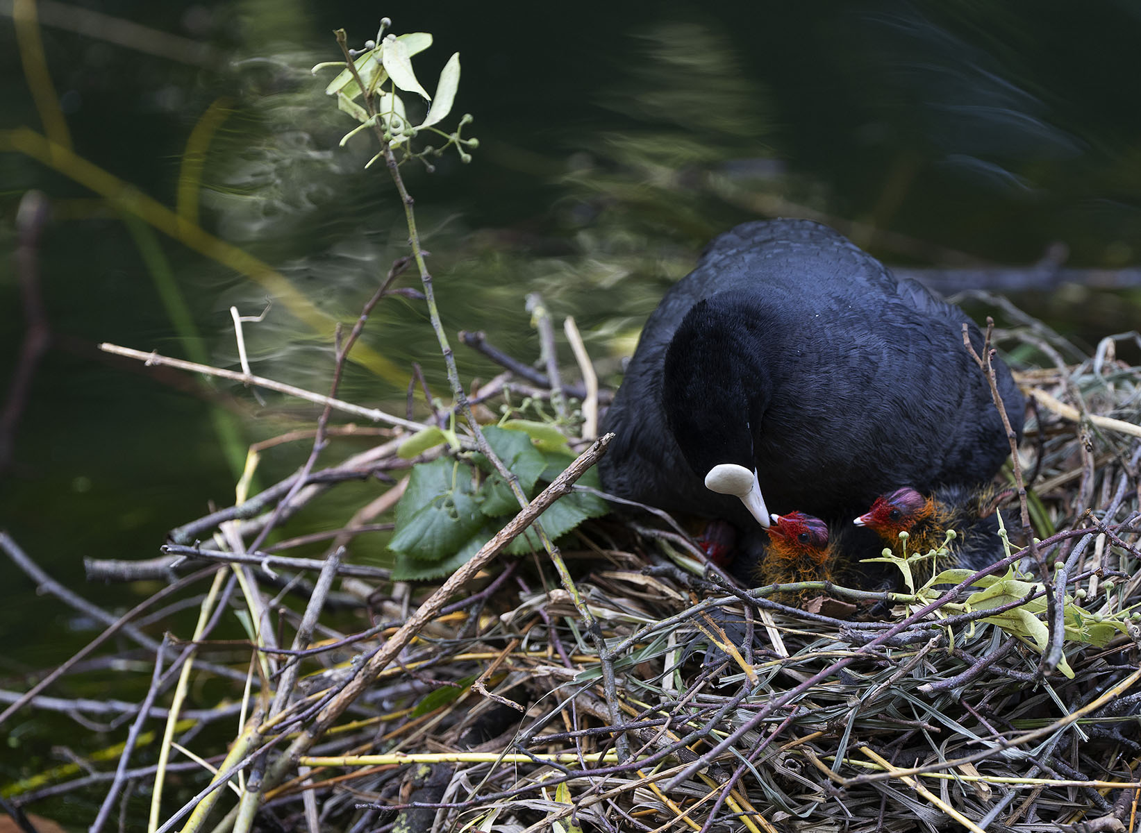11. Juni 2025    Blässhuhn (Fulica atra) mit Küken im Moerser Schlosspark